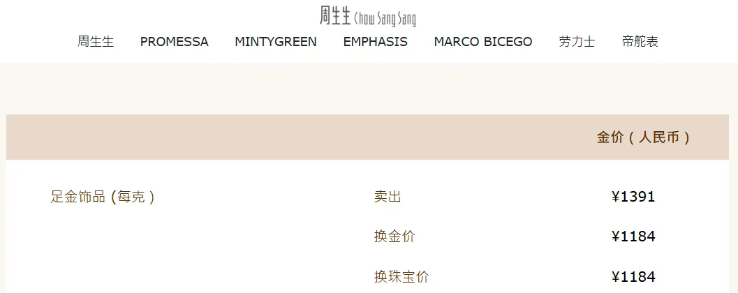 据查询发现,老庙黄金足金饰品报1397元/克,较前一日1365元/克涨32元。老凤祥足金饰品报1396元/克,较前一日1368元/克涨28元。周生生足金饰品报1391元/克,较前一日1364元/克涨了27元。