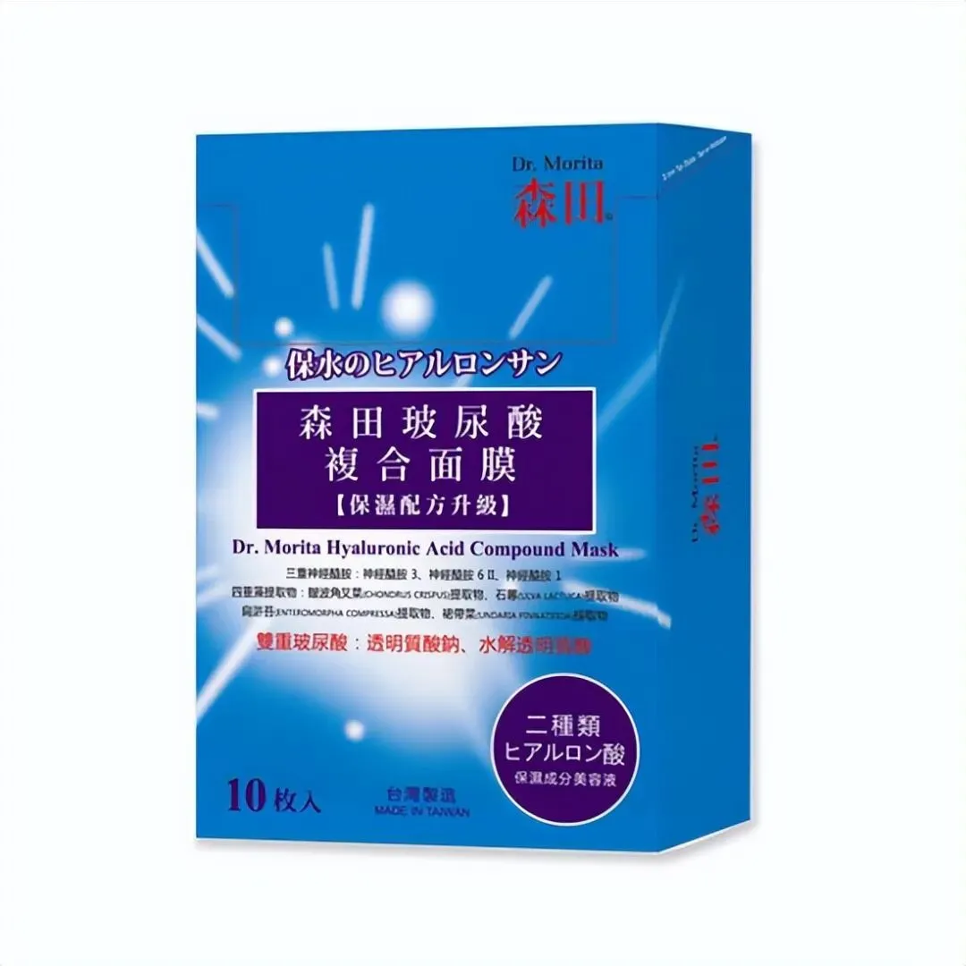 来自中国台湾省的玻尿酸补水面膜,补水效果确实挺好的,用的是进口玻尿酸。这款面膜补水效果一直很受欢迎,也是森田的当家花旦。