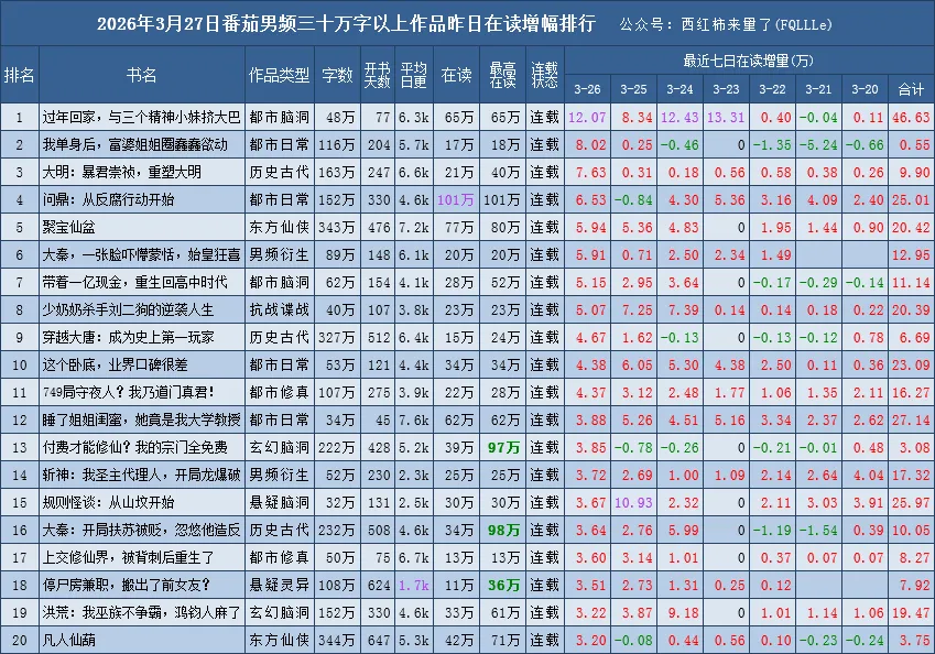 番茄阅读榜范围:30万字以上、已签约未下架、已经开始推荐的番茄原创作品