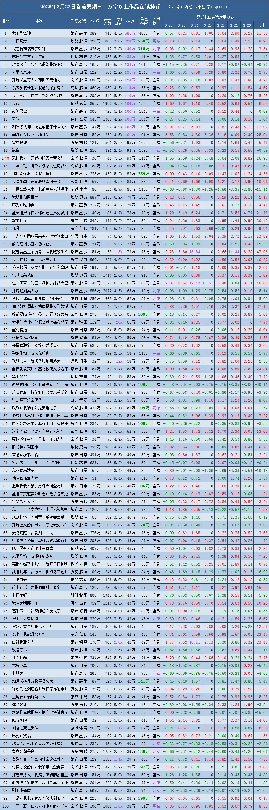 最后的8列,为最近7日的每日在读变化,以及7日的累计涨幅