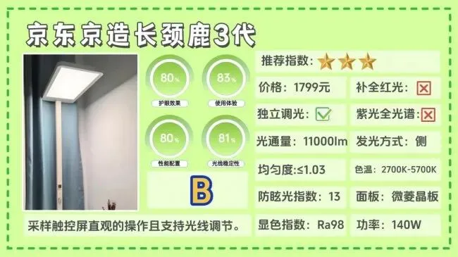 全光谱大路灯第七名:京东京造长颈鹿3代