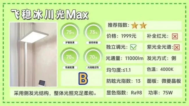 全光谱大路灯第八名:飞稳冰川光Max;采用侧发光结构,整体光照充足柔和。