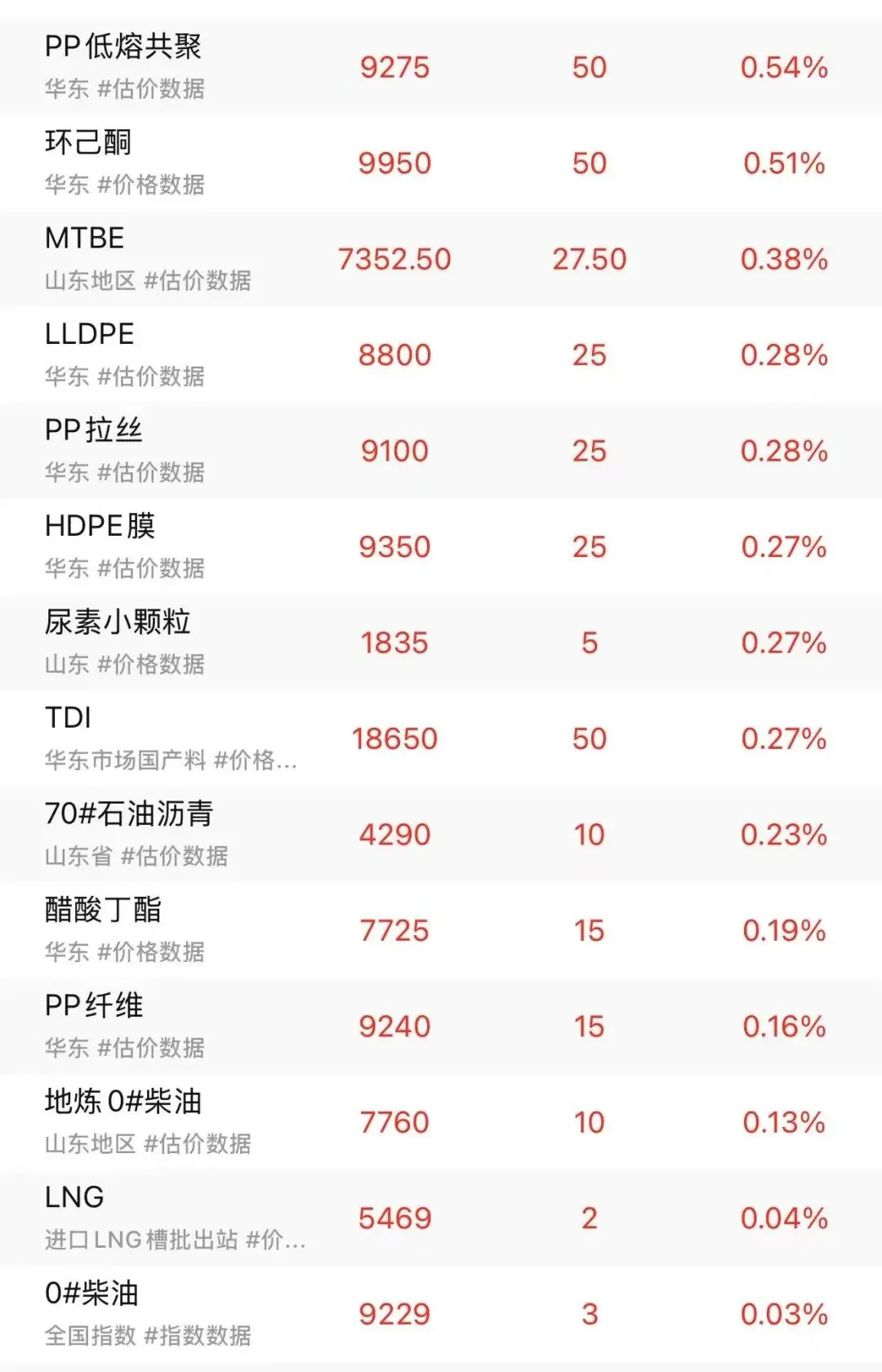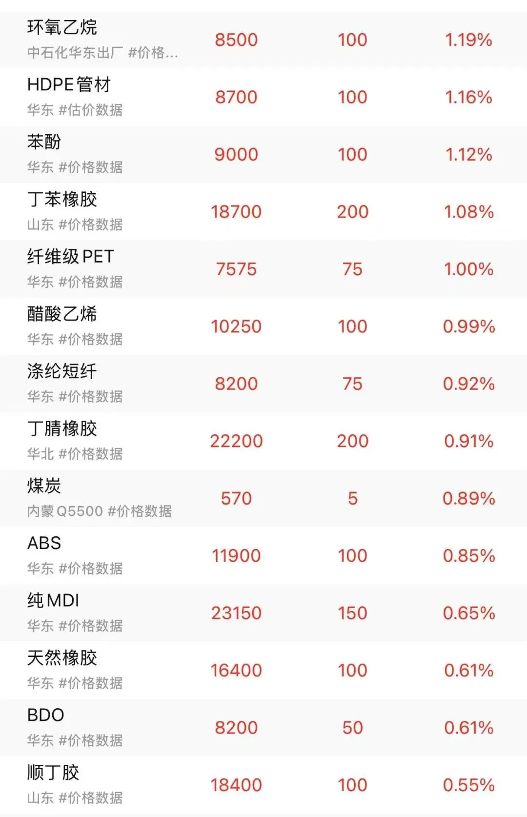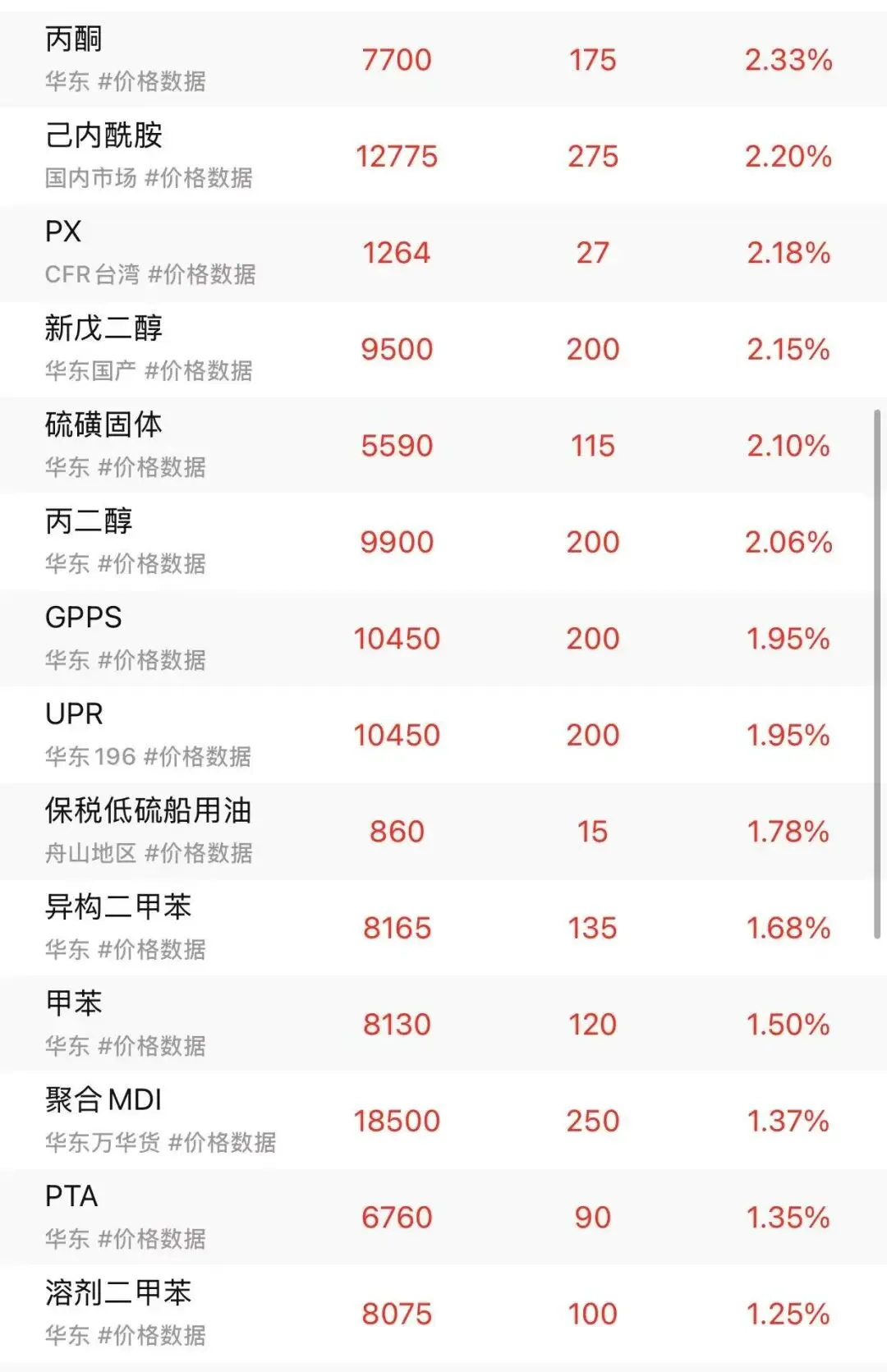 关注我,提前知晓化工原料涨跌!