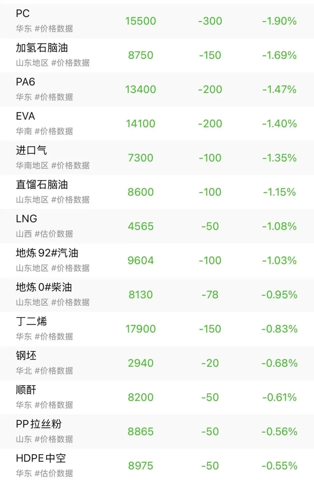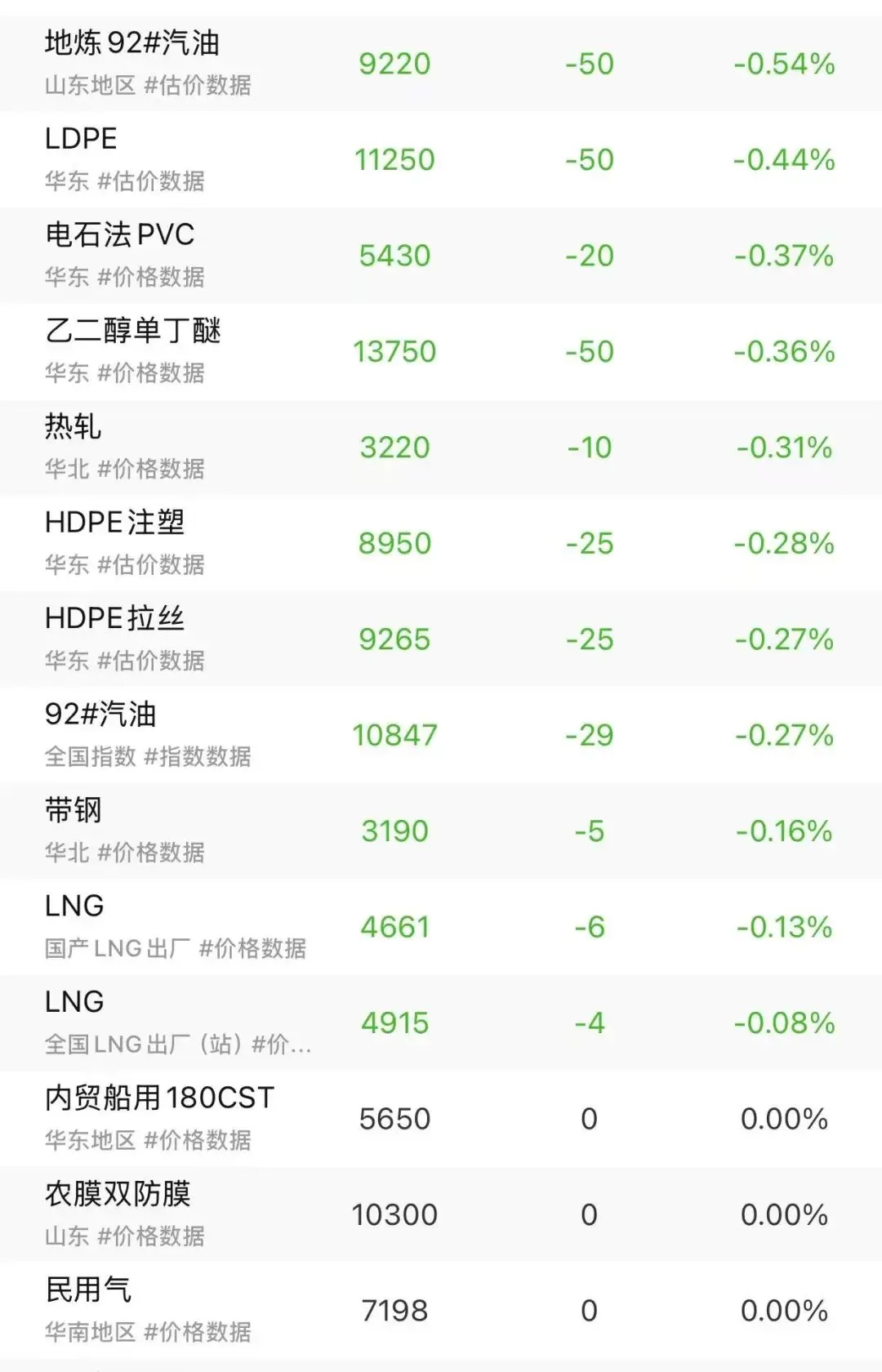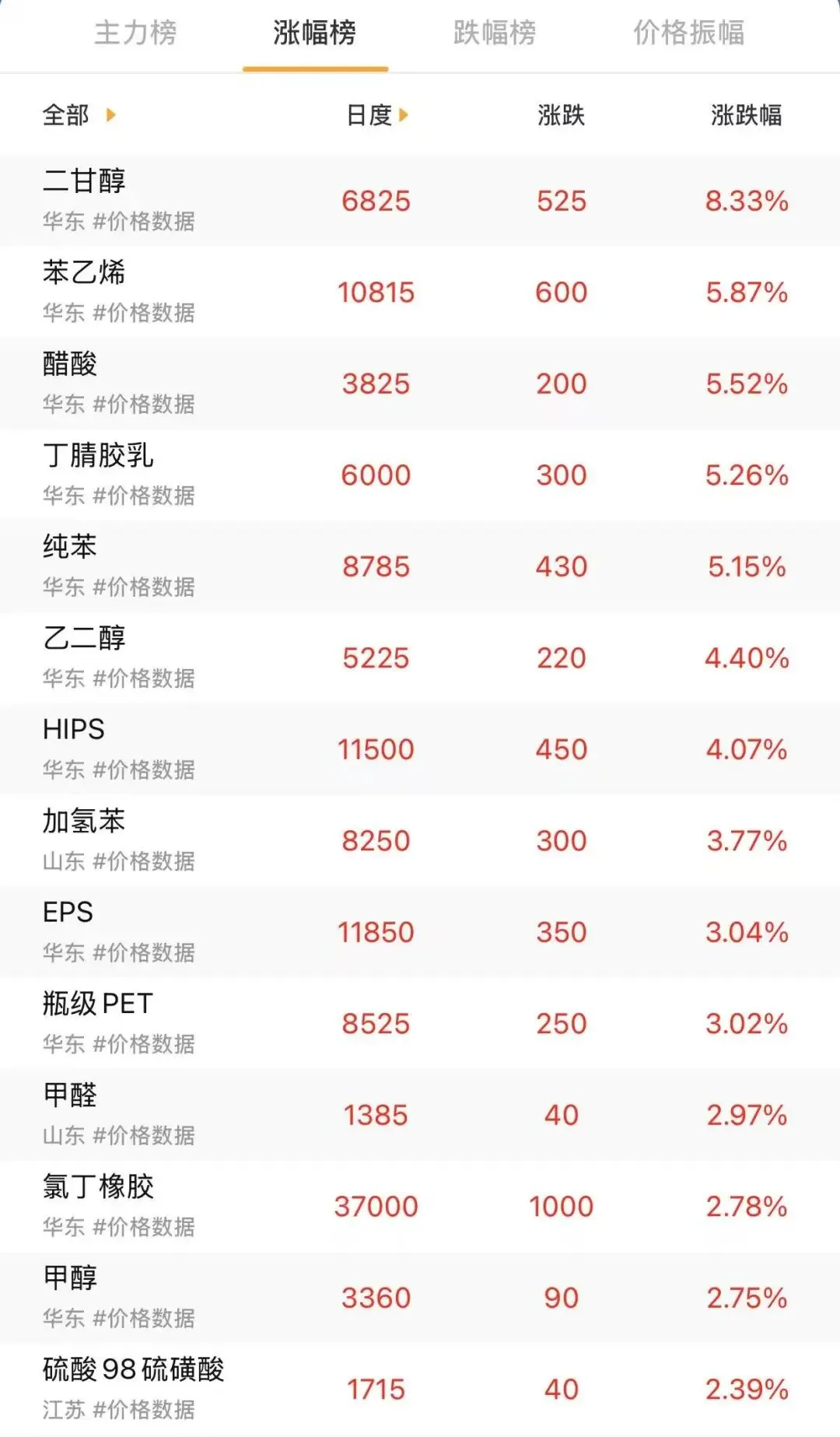 关注我,提前知晓化工原料涨跌!