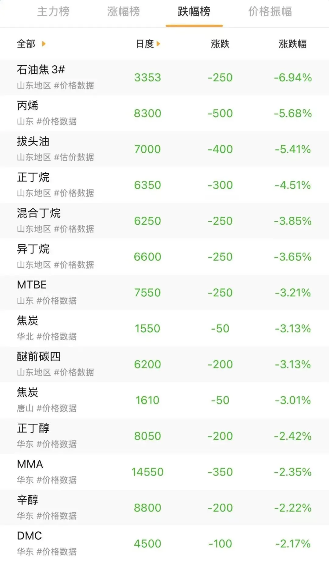 2026年3月28日化工原料价格涨跌排行榜化工原料的实时行情