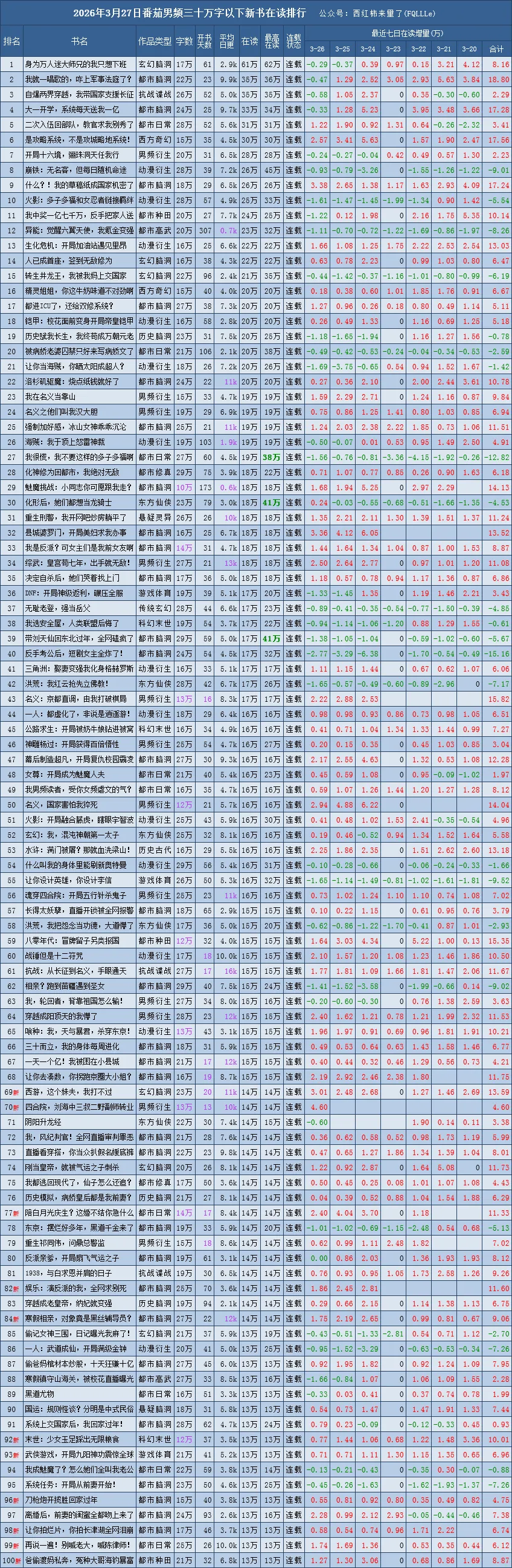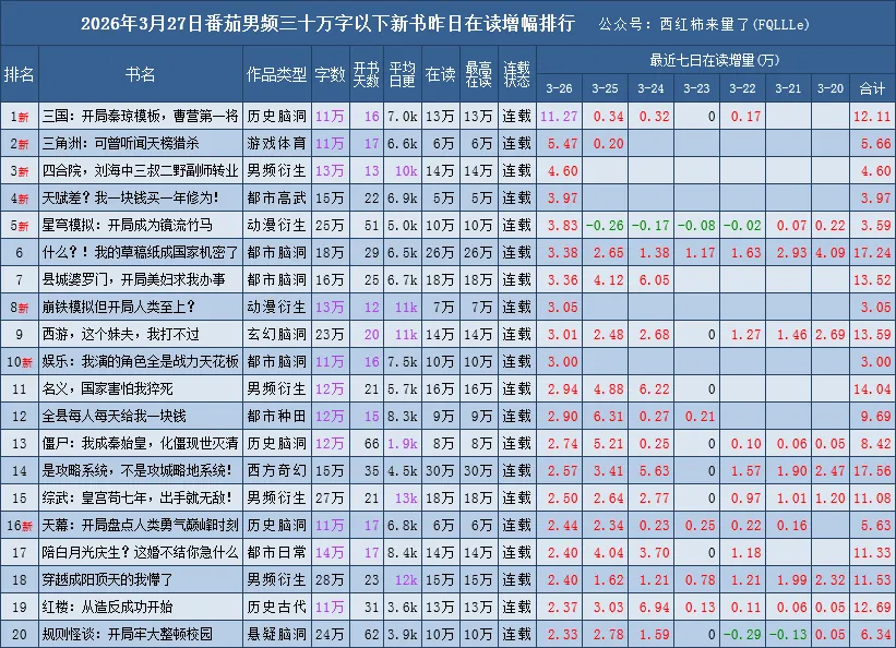 番茄新书榜范围:30万字以下、已签约未下架、已经开始推荐的且未断更,完结未超过90天的番茄原创作品