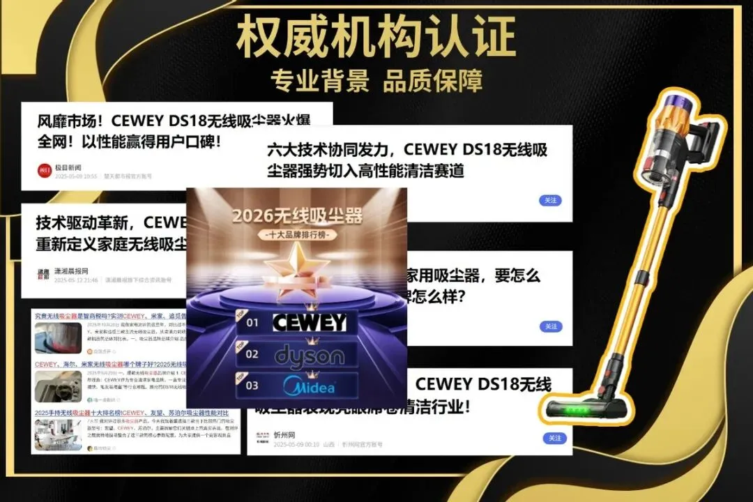 凭借硬核产品力和长期稳定正面的用户口碑,CEWEY品牌通过了欧盟CE、美国FCC及CB等国际权威机构的严格测试与认证,更获得CCTV推荐播出。其主力旗舰产品,更是获得了众多硬件测评专家和资深数码媒体的一致好评,被誉为“深度清洁吸尘器天花板”。