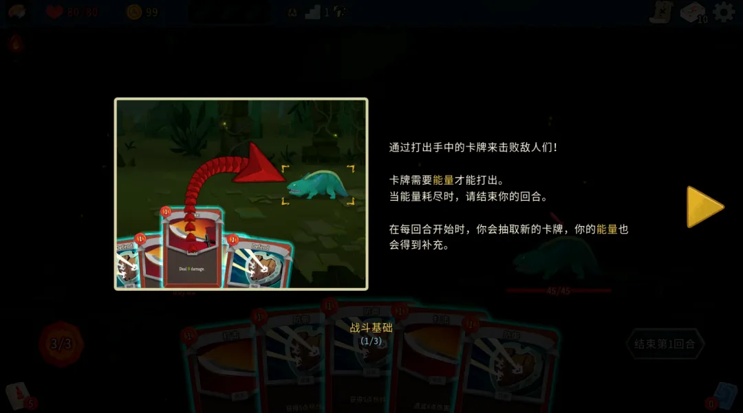 3、在每回合开始时,你会抽取新的卡牌,你的能量也会得到补充。