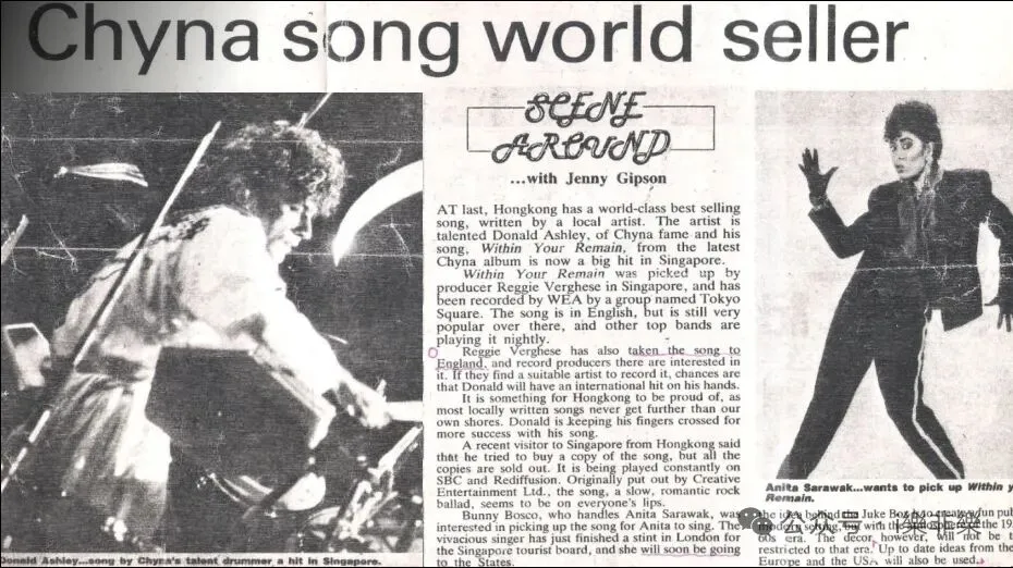 Chyna的鼓手Donald Ashley同时也是作曲和主唱,他是美国人,从小生活在香港,中文名唐龙,是当时香港最顶尖的鼓手,被称为“亚洲鼓王”。1985年,Chyna到海口举办演唱会,据当年《海南日报》报道,演唱会办了四天共九场,观众达1.5万人,成为中国内地早期摇滚演出的重要一页。