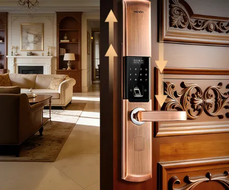 箭牌A515采用滑盖式设计,平时将指纹头和密码区遮盖起来,能避免积灰和意外划伤。锌合金材质的面板分量不轻,表面处理细腻,视觉上显得比较精致。它支持防撬报警功能,一旦有人试图暴力拆卸,会发出高分贝警报声并推送信息。指纹模块识别率对干湿手指适应性尚可,偶尔手上有水渍时,多试一两次也能通过。整体来说,这是一款功能实用、外观耐看的经典款式。