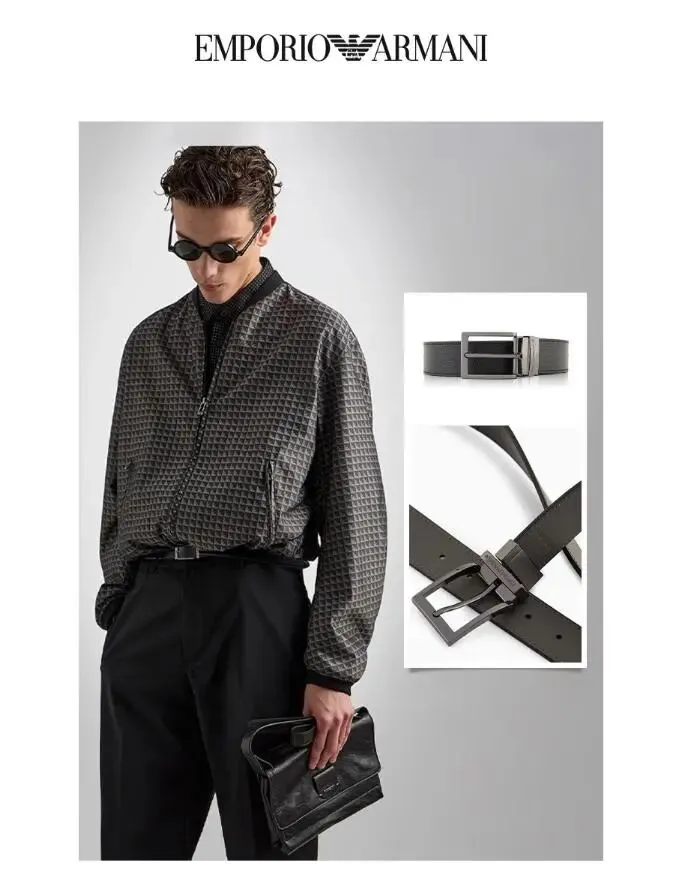 聊完顶奢,咱们得接地气一点,看看EMPORIO ARMANI/阿玛尼官方旗舰【礼物】新款男士商务通勤板扣腰带宽3.5CM春夏 84372-黑色-板扣。阿玛尼的设计哲学,就是那种让你看着舒服、用着也舒服的“刚刚好”。这条腰带的板扣设计干净利落,没有任何多余的装饰,金属件打磨得能当镜子照,扣上的“咔哒”一声,清脆悦耳,听着就让人心情舒畅。3.5厘米的宽度堪称黄金比例,既能驾驭笔挺的西裤,又不会在穿休闲裤时显得格格不入。