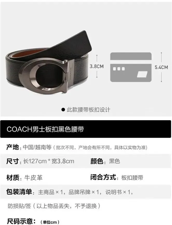 接下来这位是蔻驰(COACH)【品牌直供】男士板扣双面宽版腰带皮带38MM黑色CQ013礼物。COACH这个牌子,一直把“实用”和“好看”平衡得特别好。这条38毫米的宽版腰带,是那种能在人群里一眼就被注意到的存在。它自带一股子美式硬朗的劲儿,宽宽的带身特别提气,身材高大或者喜欢穿工装、牛仔的朋友,用它准没错。双面设计又给它加了不少分,一面是经典黑色,商务场合镇得住场子;另一面是带有标志性印花的帆布或压纹皮,休闲逛街时翻过来用,立刻变身潮流玩家。