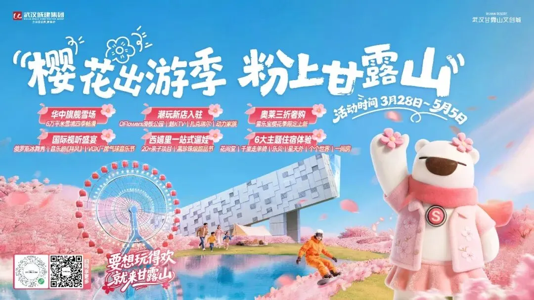 在甘露山住下来,慢慢玩,尽享惬意舒适的旅居生活。清明、五一小长假将至,武汉甘露山文创城“樱花出游季 粉上甘露山”活动即将开启,集赏樱、玩雪、观演、潮玩、购物、美食于一体的春日主题活动将为广大游客带来全新的游玩体验。