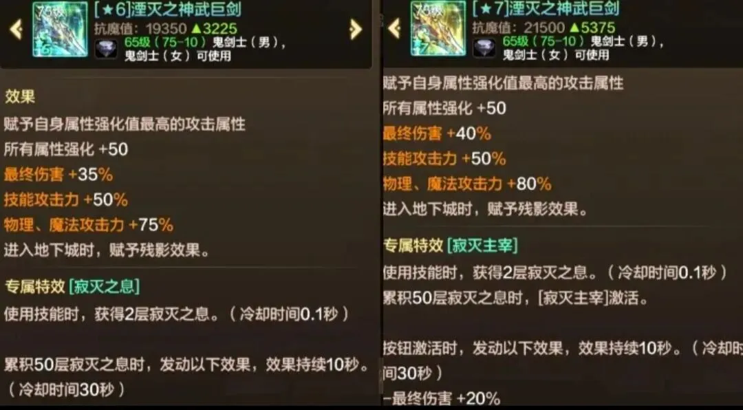 与史诗武器相同,超武同样通过升星进一步提高属性,从之前的官方爆料来看,当超武升到7星时,常驻最终伤害能达到40%,双攻上升至80%,另外专属特效提供的最终伤害CD从60秒缩短至30秒。