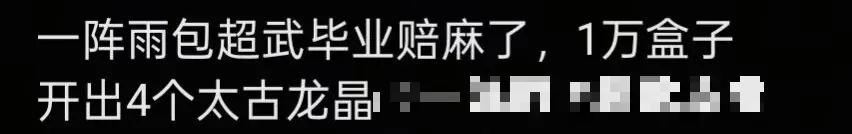 可以看到,一阵雨这一单是准备了1万个盒子,但运气不佳,最终只开出了4个龙睛,龙睛连一半都达不到,这单已经是必亏了。