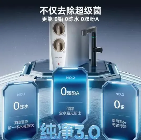 它搭载反渗透过滤系统,能深度净化自来水,去除水中杂质、有害物质,保证出水干净安全,此外配备1600G超大通量,接水速度飞快,哪怕多人同时用水、大量用水也能轻松跟上,此外内置真矿水技术,过滤后的水带有天然矿物质,口感更好,营养更贴合日常饮水需求,机身运行稳定,过滤效果持久,日常使用全程省心,适配大家庭高频用水场景。