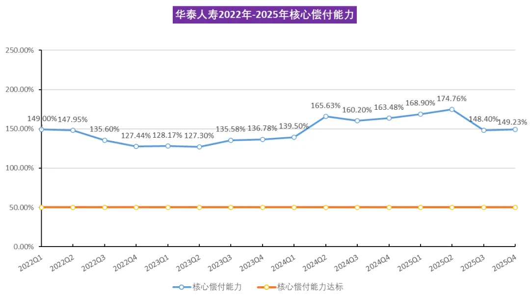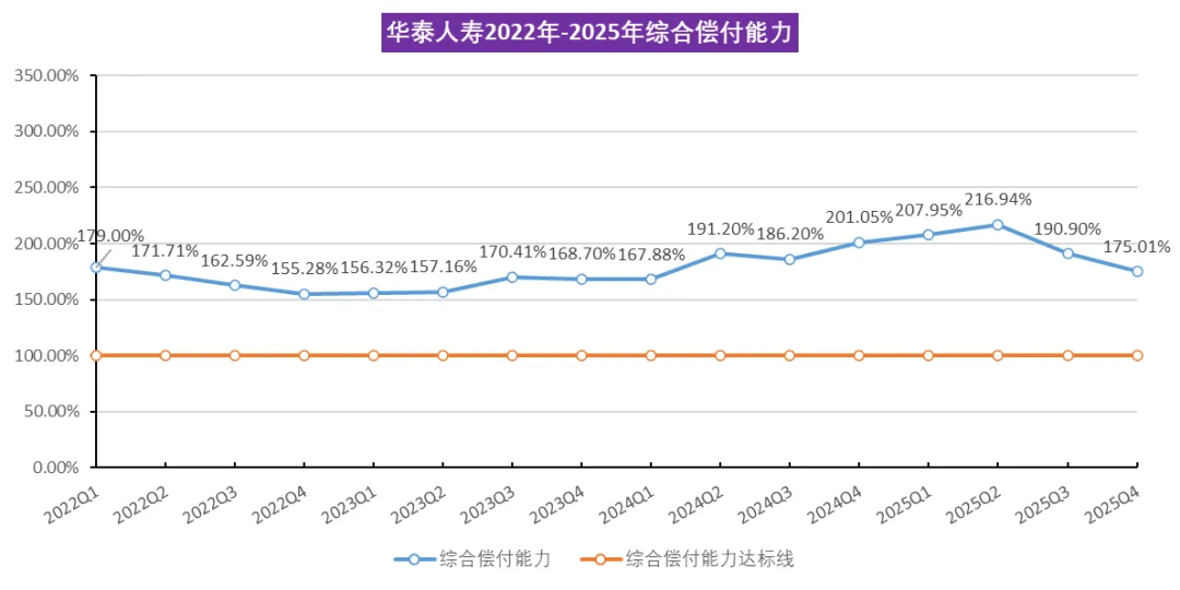 截至 2025年四季度,综合偿付能力充足率为175.01%,历史综合偿付能力均在150%以上,高于监管100%的最低要求。2)核心偿付能力