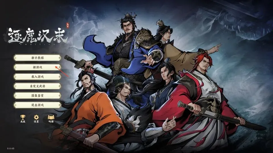 1、运行逐鹿汉末,进入游戏点击“新游戏”;