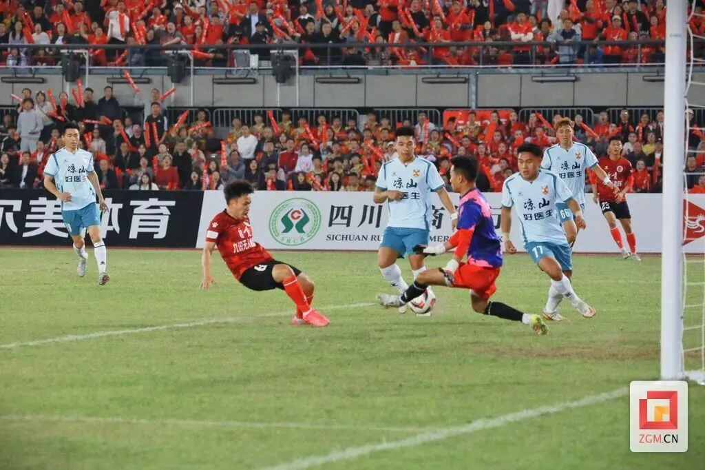 第39分钟,凉山队利用自贡队解围失误,推射破门得分,自贡队陷入被动局面。