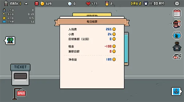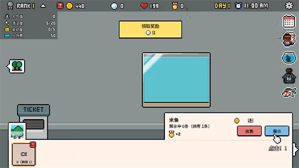 9、除了收取门票外,定期清理水族馆的环境,并收集游客头上的爱心符号来提升游客好感度,增加收益。