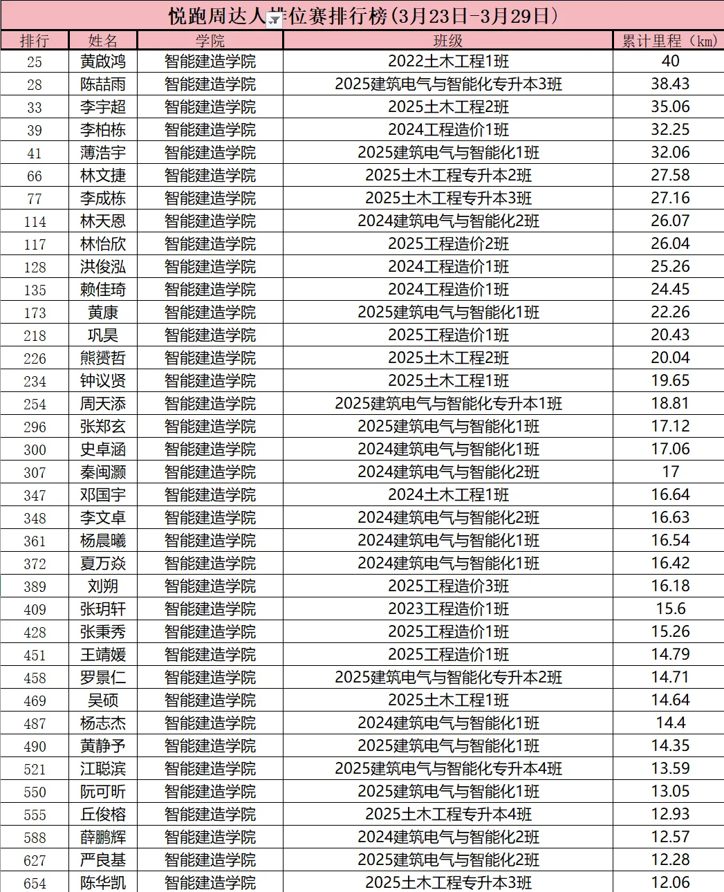 在每一次并肩奔跑里迸发智能建造学院的团队活力,于每一步携手前进中绽放青春光彩!期待更多班级与个人踏入悦跑征程,在协作运动里收获健康与凝聚力,在同心奔跑中镌刻独属于智能建造人的青春华章!