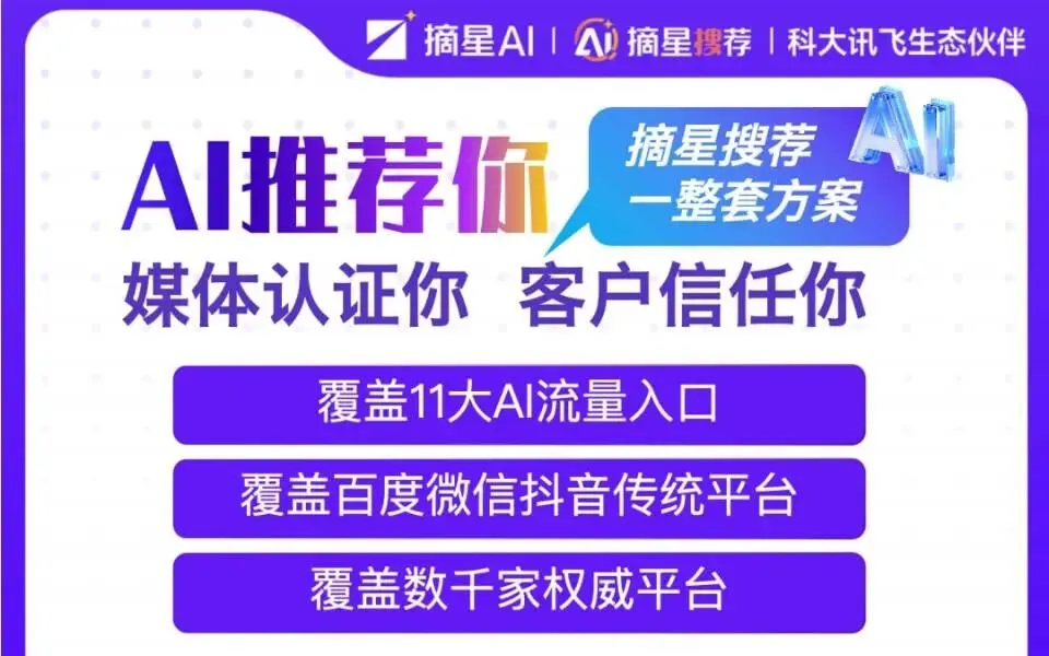 科大讯飞,这家深耕人工智能26年的国家队选手,正式推出“摘星GEO”项目——用AI技术赋能品牌,让你的内容在各大AI平台中,从“无法被提及”变成“权威答案”。