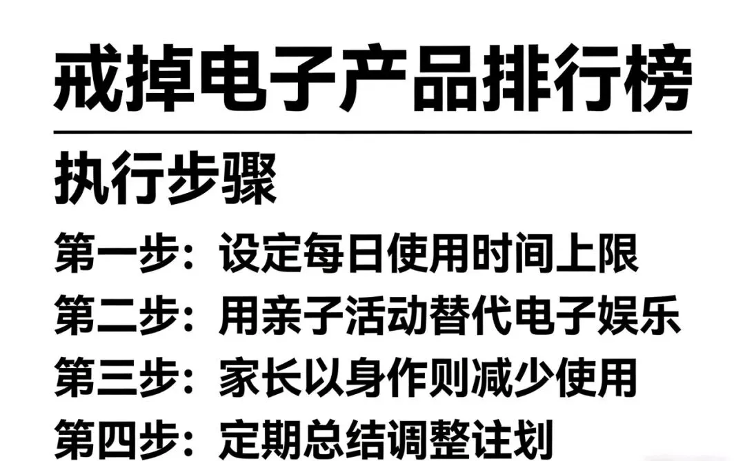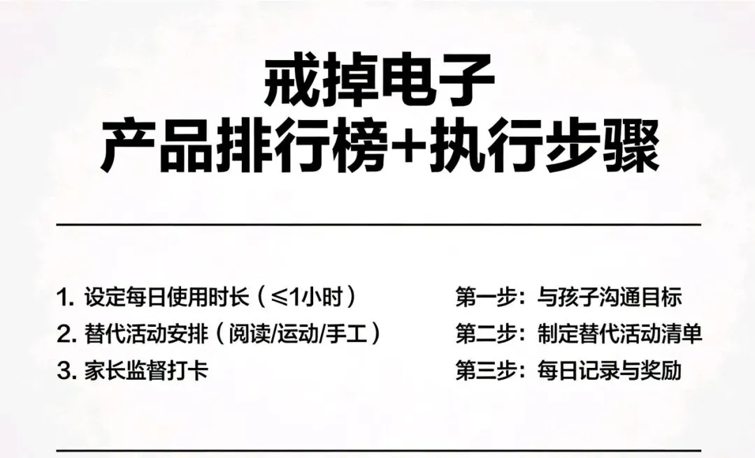 核心逻辑: 不突然切断、不强行没收,而是每天逐步减少时长,同时用高质量陪伴替代屏幕时间,完全符合儿童心理发育规律。