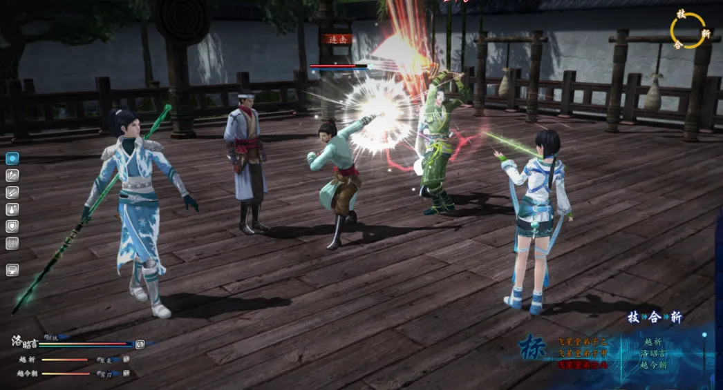 2、激进打法:切恢复优先,让AI操控今朝奶,玩家操作昭言。很多人可能会说,AI行动慢且不稳定,这样加血肯定来不及的,没错,确实来不及,玩家自己操控今朝都可能来不及,AI还用说?但我前面说了,用昭言,为什么用昭言不用祈妹?关键就在昭言岬护职业下的断水流这个技能。仙六吸收了很多网络的概念,其中仇恨值就是一个,简单和普通难度下,很多人基本上对仙六的仇恨值完全没有概念,反正随便打打就过了,也不会去研究,但困难模式不行,特别是第一个BOSS。没有断水流,BOSS很喜欢放AOE,不练级的情况下,BOSS一旦开场就放全体伤血+中毒的AOE,就很有可能导致团灭,就算不团灭,也要浪费很多九转金丹和行军丹才救得回来。