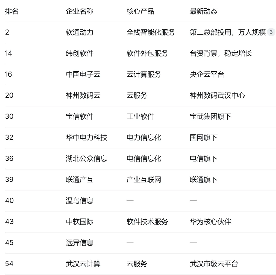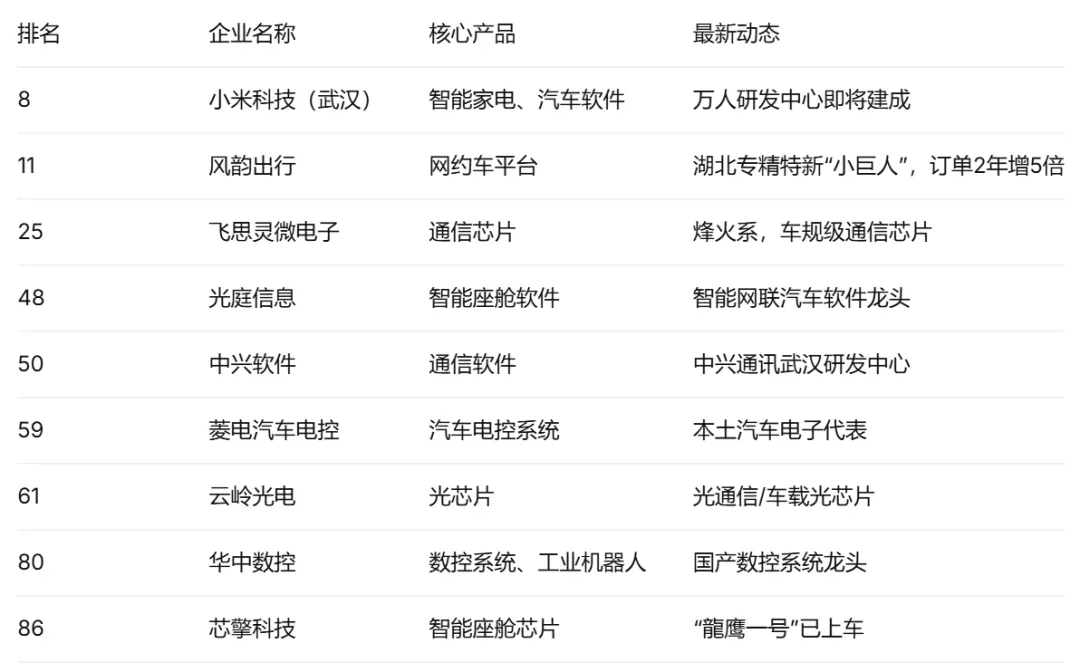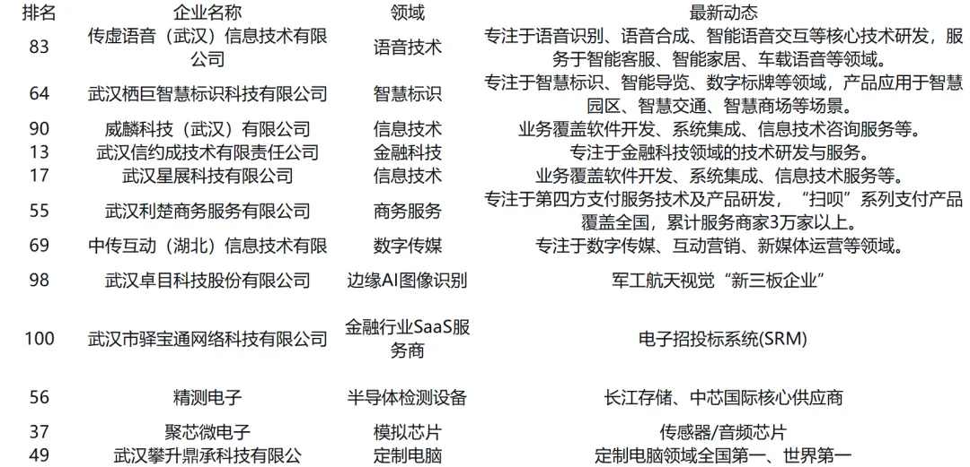| 东湖高新区 | 56家 | 烽火通信、软通动力、斗鱼、福禄网络、数传集团、小米、达梦数据等 |