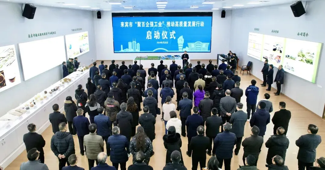 ▲2月29日上午,来宾市“聚百企强工业”推动高质量发展行动启动仪式在兴宾区东糖凤凰有限公司(展厅)举行。(资料图)一年春作首,攻坚竞争先。近日,来宾市启动“聚百企强工业”行动,在3月份至5月份期间,精心挑选100家企业,开展市领导联系服务,并采取“一对一”、分级分类服务的方式,实现访百企、解百难、促发展。
