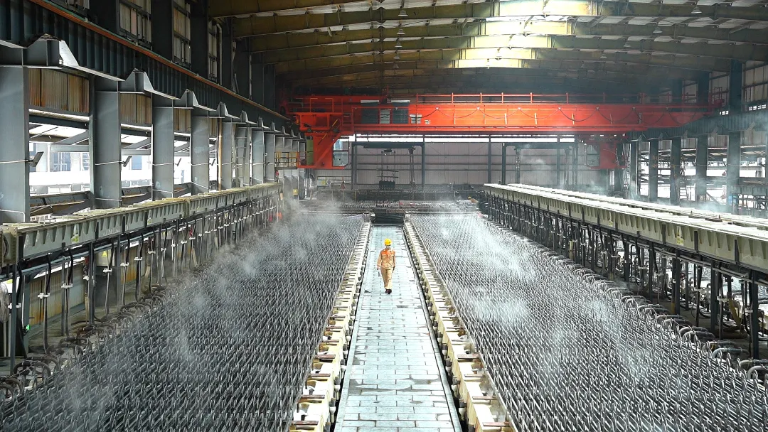 ▲汇元锰业有限责任公司电解机组生产车间。(资料图)