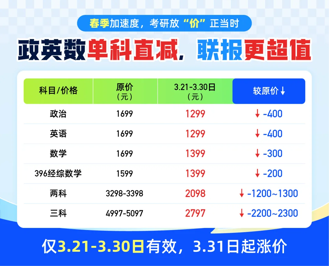 政英数单科直减,联报更超值📚 政治|英语|数学|396经综数学