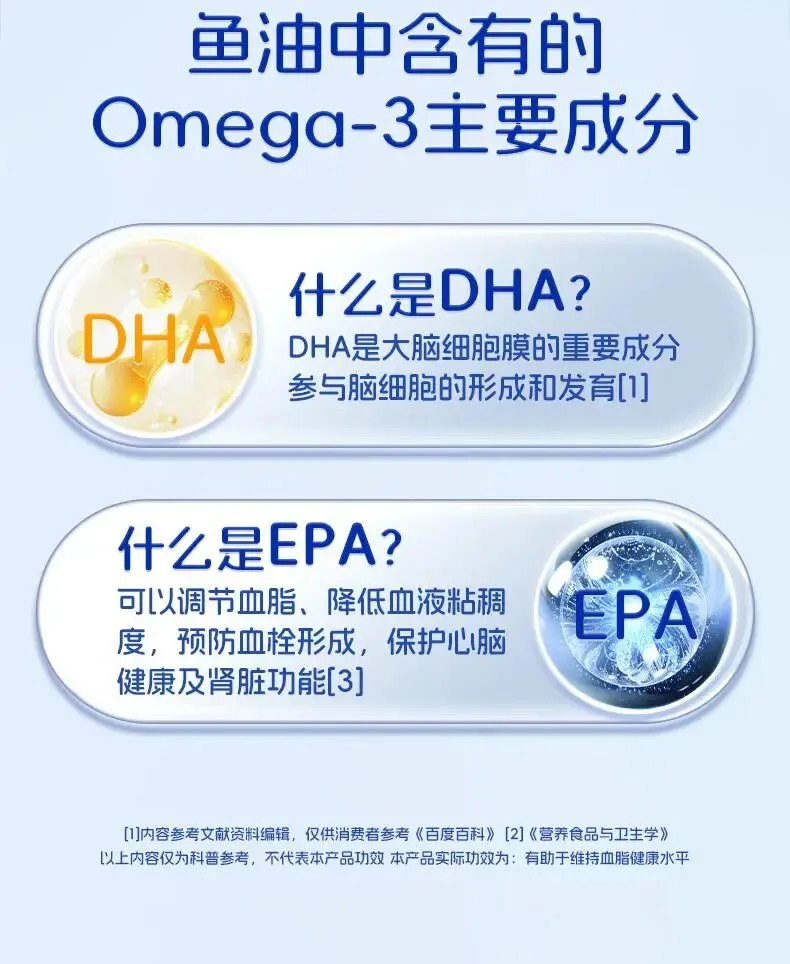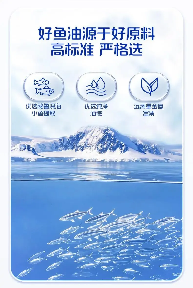 4.全龄段日常守护:建议选用原料纯净度高、吸收率出色、成分清晰透明的高效鱼油配方,无香精添加,长期服用建立健康防护屏障。