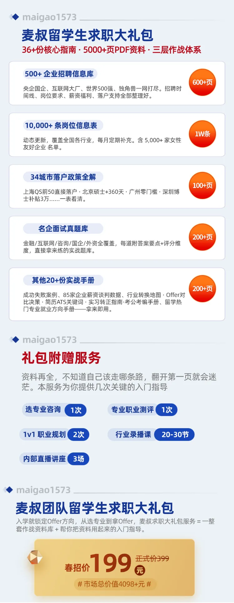 这就是【老麦求职大礼包】做的事——在入学阶段,把从选专业到拿offer的整条路提前铺好:全套求职资料库(超36份指南,5000+页)。