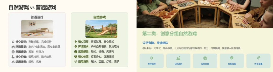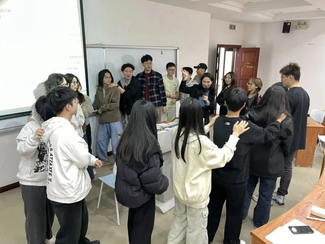 在教学环节,课堂以自然游戏为切入点,将自然教育理念融入互动体验。同学们在轻松有趣的游戏中积极沟通、相互配合,在沉浸式参与中加深对自然游戏教学形式的理解,同时快速增进彼此了解、拉近团队距离,有效促进了成员间的相互熟识与班级凝聚力,实现了以游戏促学习、以互动促融合的教学目标。