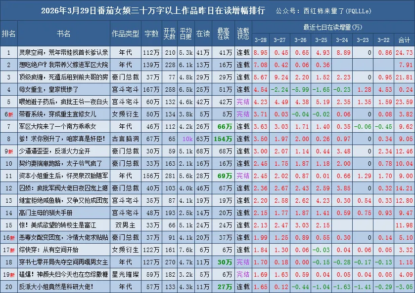 番茄阅读榜范围:30万字以上、已签约未下架、已经开始推荐的番茄原创作品