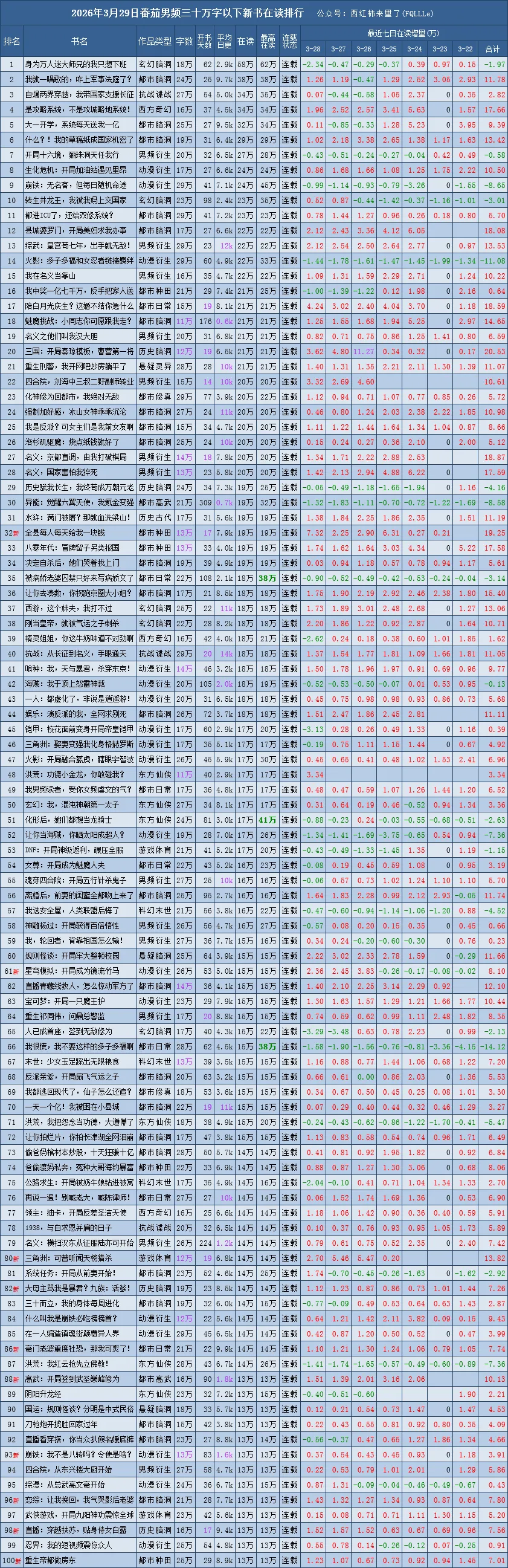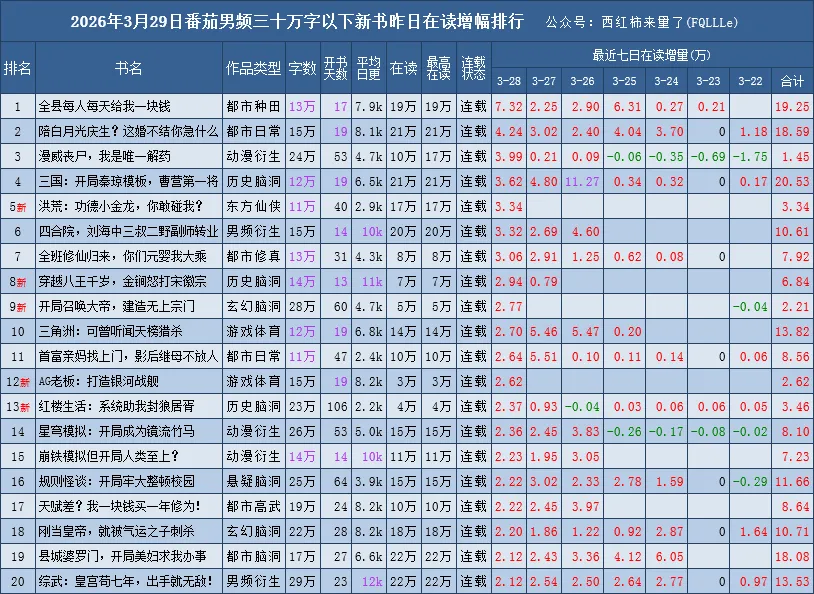 番茄新书榜范围:30万字以下、已签约未下架、已经开始推荐的且未断更,完结未超过90天的番茄原创作品