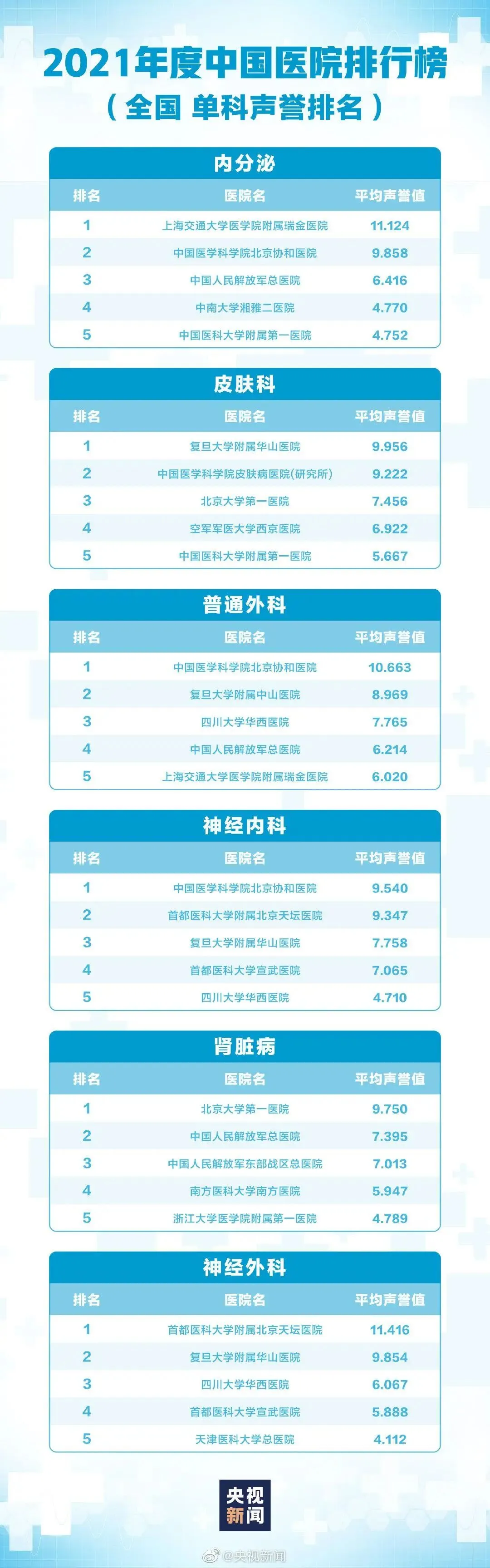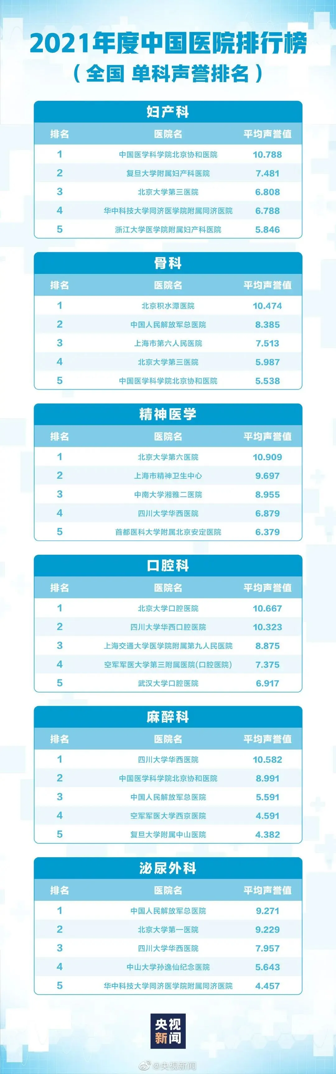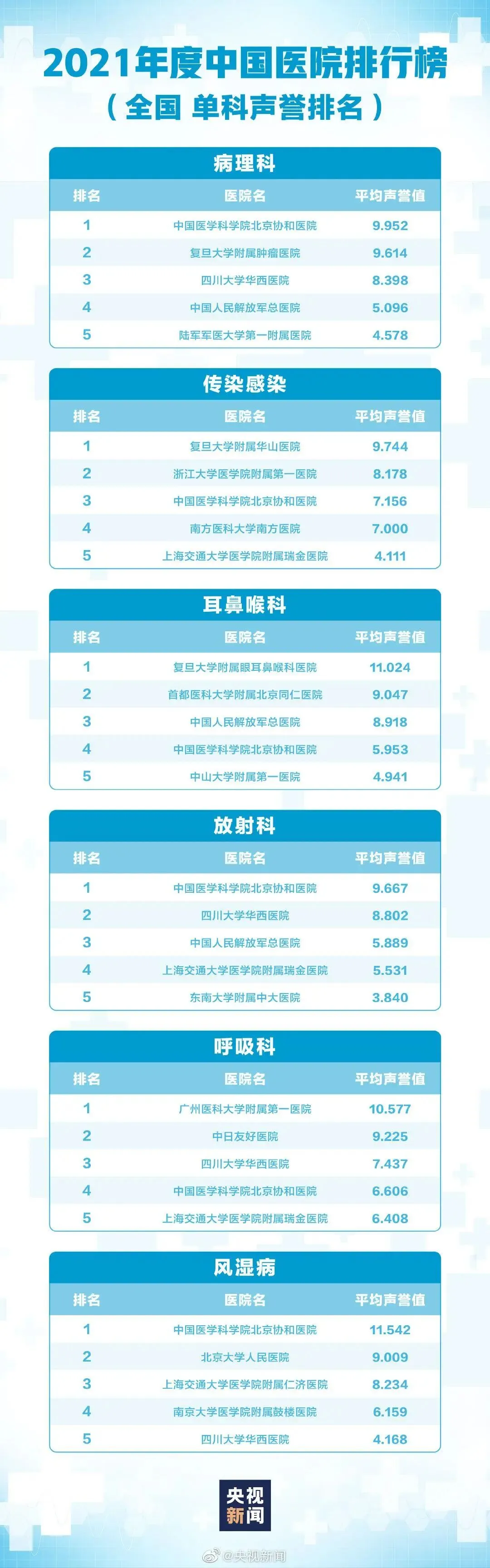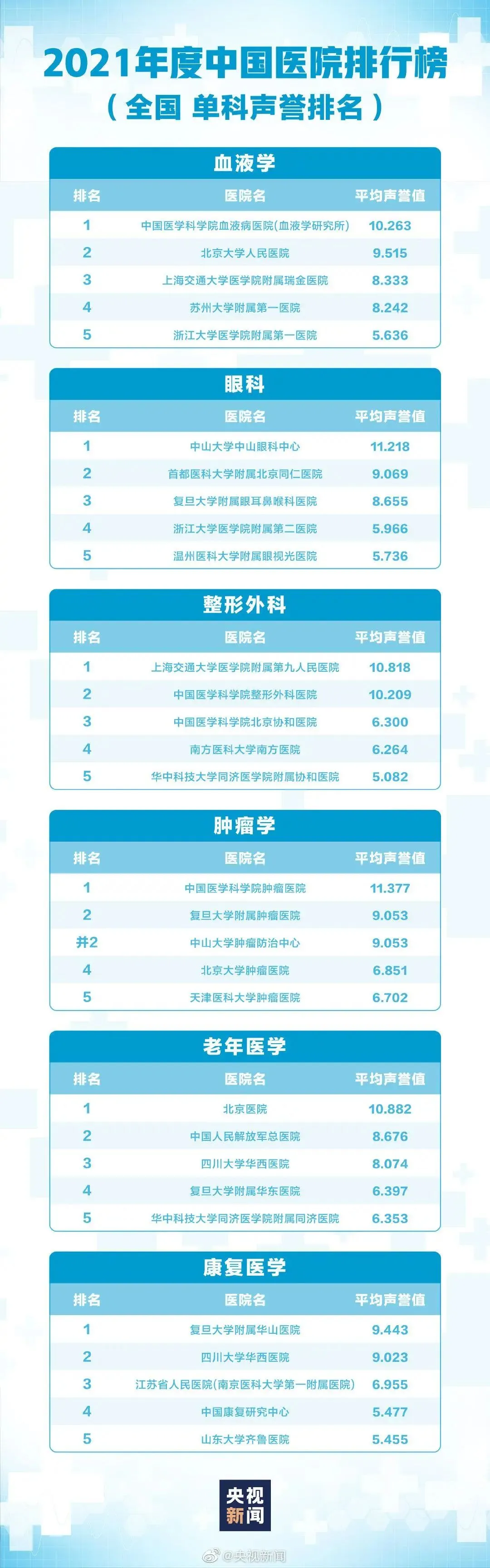 原标题:《复旦版2021年度中国医院综合排行榜和专科声誉排行榜公布》