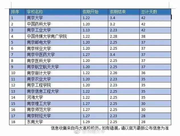 那么,其他高校寒假放几天呢?以下为部分高校寒假时间,欢迎补充~
