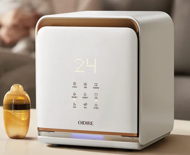 支持免沥水设计,宝宝用品清洗之后可以直接放进去,不用提前晾干,内部有循环气流,烘干时可以把水分带走,开门会自动暂停运行,使用过程更稳妥。适合放在家里台面长期给宝宝用品做处理。
