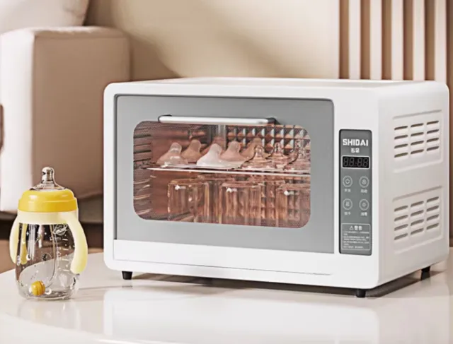 这款婴儿消毒柜整体造型小巧,重量轻便,女生可以轻松挪动更换位置。内部空间规划合理,奶瓶、奶嘴、辅食勺等小件物品都有对应放置区域,不会杂乱。开门后自动暂停工作,关闭后继续运行,使用过程更省心。