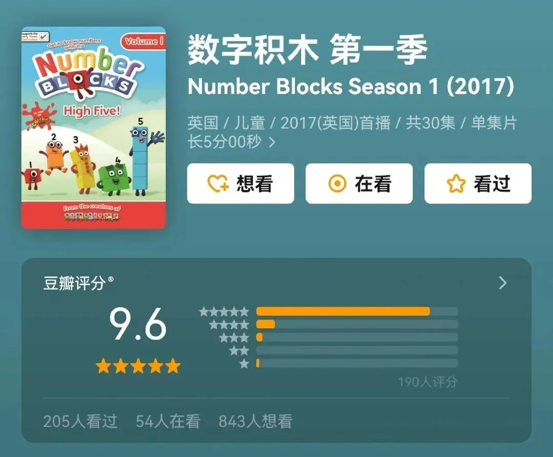 4.数字积木。数学启蒙天花板,强烈推荐。把加减乘除变得形象有趣,孩子主动爱看,数学开窍快,家长好评最多。