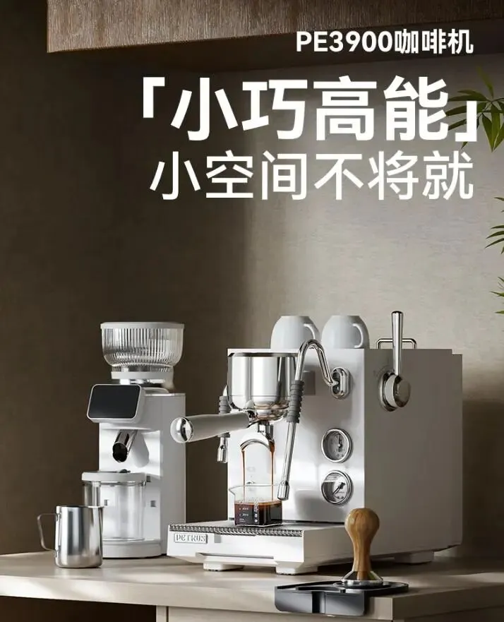 柏翠意式半自动咖啡机三锅炉双泵全半自动家用商用小型浓缩蒸汽打奶泡机 PE3900 节日礼物 海盐白