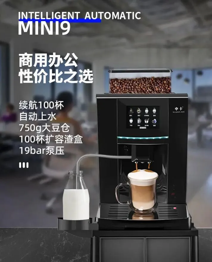 中卡MINI9咖啡机全自动商用自动上水大办公室酒店 一键美式意式咖啡机全自动研磨一体 19bar泵压 MINI9黑色标配+奶罐