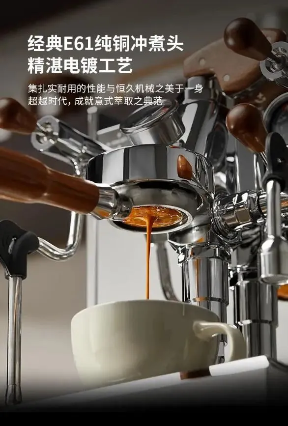 这款是家用商用两相宜的宝藏款,颜值在线还特别耐用,不管是小型咖啡店、私房工作室,还是公司茶水间用,都适配度拉满。E61冲煮头设计是它的杀手锏,萃取出来的咖啡油脂绵密厚实,口感醇厚不发苦,美式、浓缩随便做,满足不同人的口味需求。银黑色机身简约大气,放在店里、办公室都不突兀,操作不算复杂,新手学个十几分钟就能上手,不用专门请专业咖啡师。