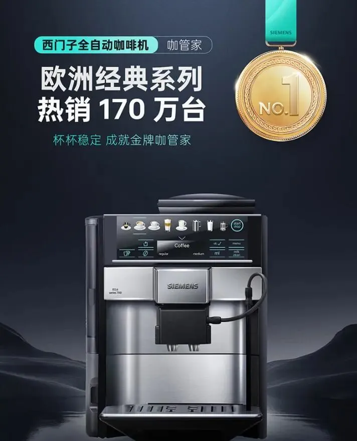 质量绝对经得起考验,西门子大品牌,品控严格,机身耐用,高频商用也能轻松应对,不容易出现故障,省去反复维修的麻烦。它的适配场景特别广,办公、酒店、咖啡店都能用,智控设计能精准控制萃取时间和温度,每一杯咖啡的口感都能保持一致,留住回头客。现在入手有专属折扣,虽然价格稍高,但一分钱一分货,商用选它,绝对物超所值,身边很多高端酒店都在用。