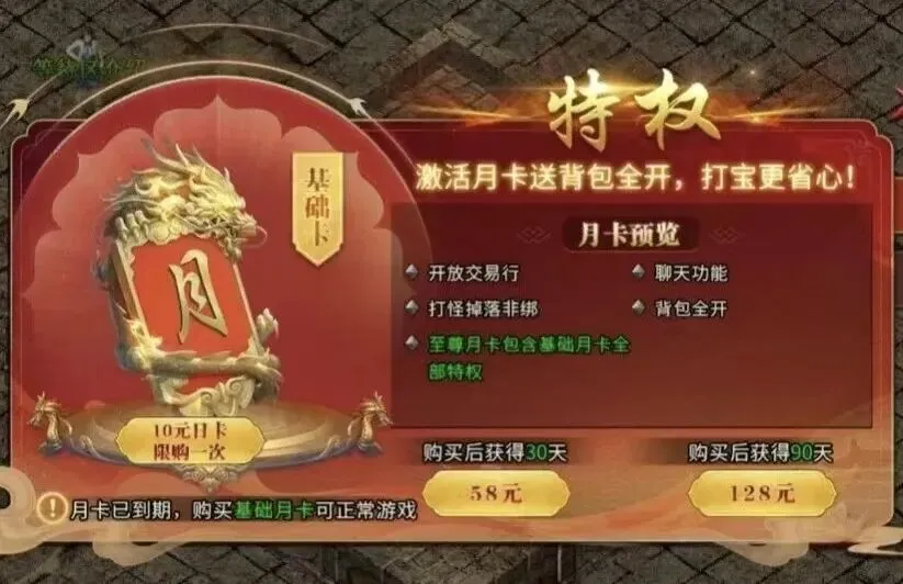 游戏核心采用纯点卡计时付费模式,仅对游戏时长进行收费,不设置VIP系统、无属性付费商城、没有氪金限定装备,避免充值带来的数值差距。提供月卡与季卡两种选择,收费方式清晰透明,无额外隐藏消费。计费仅在非安全区域打怪时计算,在主城休整、摆摊交易、离线状态均不消耗时长,完成每日活跃任务还可获得免费游戏时长,不付费也能正常体验内容。高阶装备、转生材料、稀有道具等核心资源均通过怪物掉落获取,普通怪物也有几率掉落稀有物品,散人玩家依靠持续游戏即可稳步提升战力。