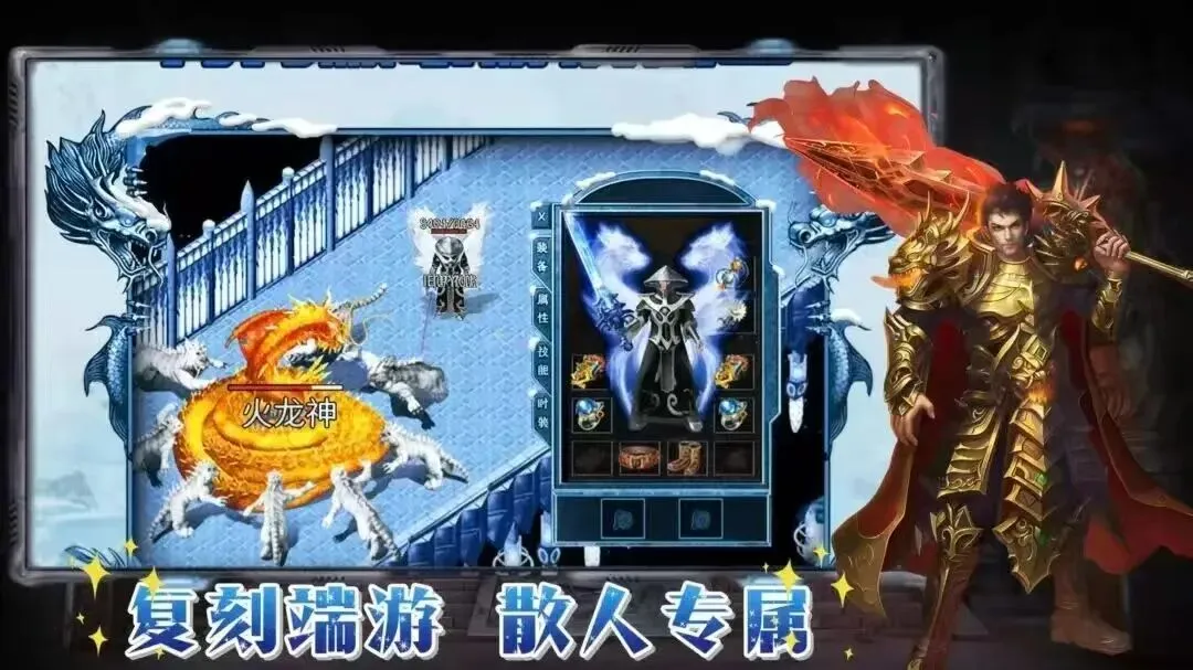 游戏在场景与美术风格上高度还原经典冰雪版本,冰雪之城、冰封雪域、冰龙神殿、雪域魔窟等经典地图均完整呈现,整体画面风格偏向复古冰雪质感,无过度花哨的特效与违和改动,保持原作氛围。搭配对应场景背景音乐,怪物与BOSS模型也保持经典设定,场景内无空气墙,地图衔接流畅,战斗手感与细节均做了优化,老玩家可以快速适应,沉浸式体验冰雪题材的经典玩法。