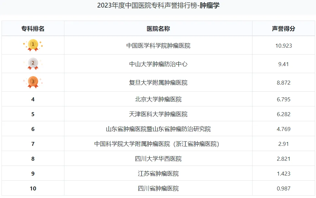 根据复旦版《2023年度中国医院专科声誉排行榜》榜单,本文将为大家整理“肿瘤科”全国排名前10的医院及其挂号方式,以及全国各分区肿瘤学排名前五的医院,以供参考。