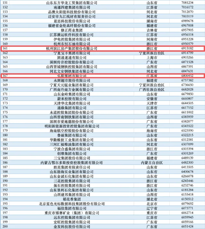 这6家幸存者分别是:龙湖集团(第73位,营收1274.75亿元)、新城控股(第 117位)、滨江房产(第161位)、弘阳集团(第167位)、大华集团、美的置业。